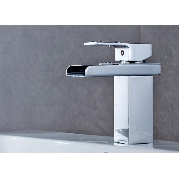 Waterfall Square Spout Bathroom Basin Faucets ROVATE With Single Hole Images |